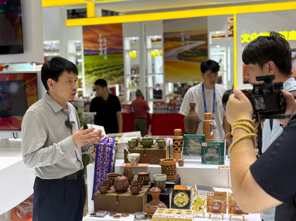 展會期間,董事長王新軍成為了仰韶文化有力的當代“代言人”。他精神飽滿,從容應對來訪媒體的鏡頭與話筒,向全國乃至世界觀眾講述仰韶彩陶的獨特魅力與深厚底蘊。從企業(yè)如何秉持匠心守護傳統工藝,到如何通過創(chuàng)新設計讓古老文物“活”在當下。他的講述,讓仰韶文化從塵封的歷史中躍然而出,煥發(fā)出歷久彌新的時代光彩。